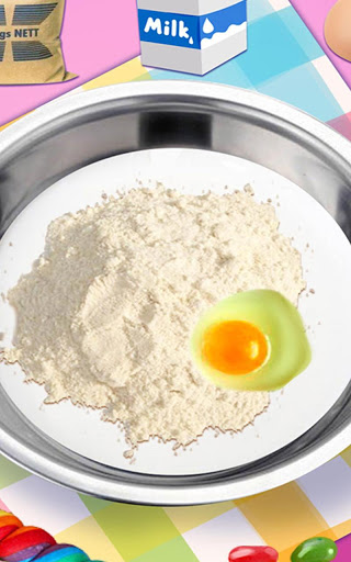 - Drag to add all the ingredients to the bowl, such as milk, ice, flour, eggs... and mix them.