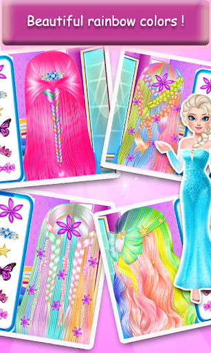 Do you love ice princess games, and ice queen Elsa and ice princess Anna with their frozen dress up? so play this princess hair salon game and help snow queen Elsa try a rainbow hairstyle in this princess hair salon game and ice queen beauty spa game.