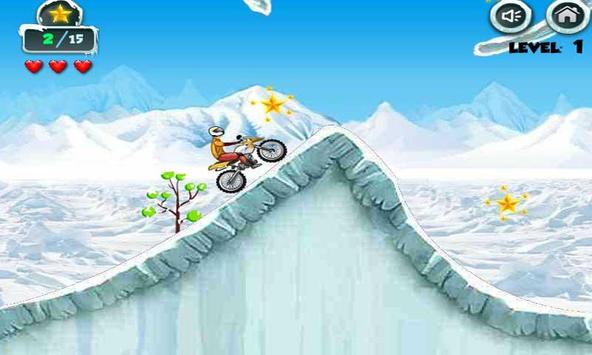It's great bike moto ice mountains ride game!Drive the moto through ice mountains.Show your skill and keep your bike steady and do not crash.Don't forget to collect the stars too to pass the level.