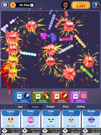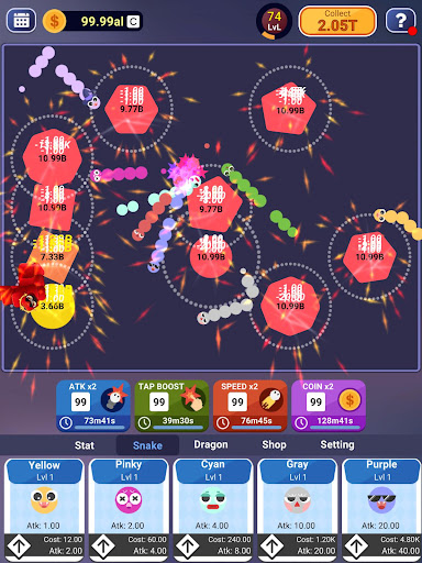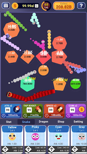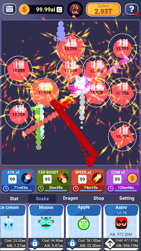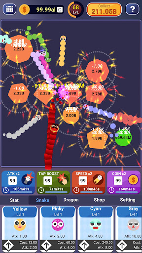 6 - Boost damage, time, and money to make your snakes stronger.