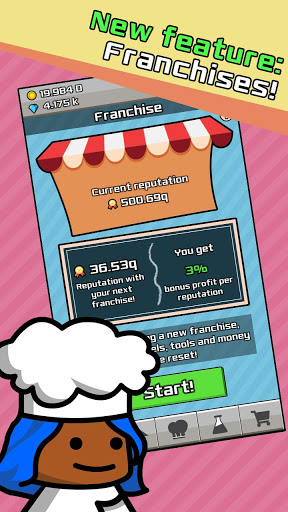 Idle Cookinator is a easy-to-play game that both beginners and experienced gamers will enjoy. You can just have a lot of chefs working for you or maximize the profit by selecting the right chef in the right recipe!