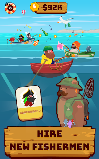 - Unlock new fishermen who will continue to earn money for you whilst you’re away!