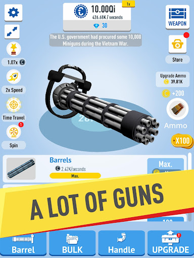Even though the idle is not launched, you would get income from your weapons. Upgrade your weapons and get more offline income. Feel the progress and move effortlessly passing the levels in automatic mode. Idle Gun Clicker is an easy to follow and nicely done clicker game about weapons with a shooting range feature. Download Idle Gun Clicker right now and you will be able to not only enjoy the game but also to know much more about the best guns on earth!