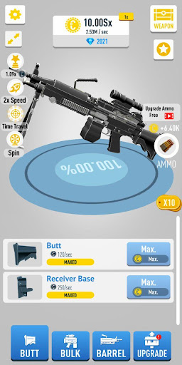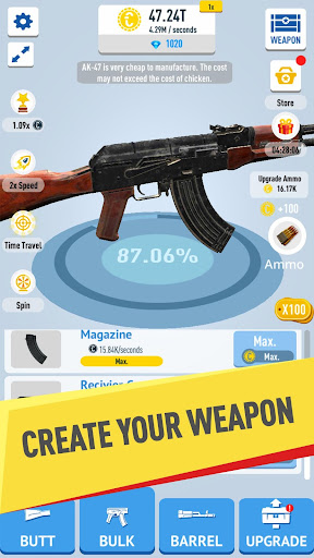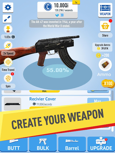 You can build such iconic submachine guns as AK-47, M-134, M-249, RPG-7.This clicker also allows you to get involved into the building process of the coolest and incredibly futuristic weapons that actually exist and have been recently used by the most powerful militaries in the world. When you build your gun, you can try it in the shooting range!