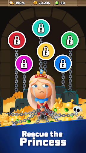Manage your own little kingdom, fight with brave knights and epic heroes to save the princess and become the idle king of the world.