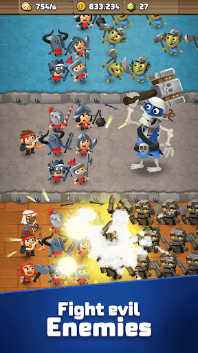 Invest gold in your knights or collect heroes to fight epic battles against your enemies.