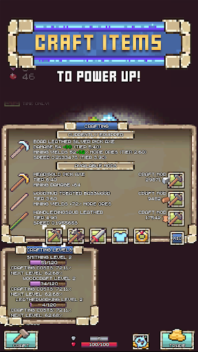 Use the materials from the mines and forests to craft and upgrade your gear for digging, hunting and lumberjacking. Idle or dig; better gear is just a tap away!