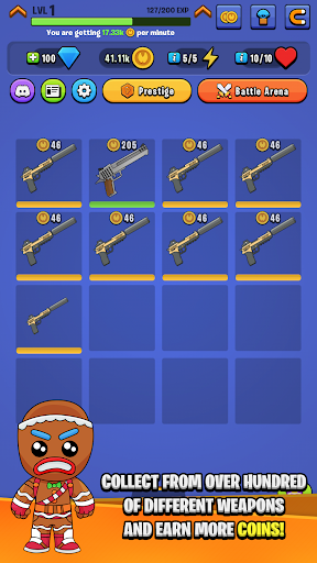 Collect over 100 unique weapons, merge them, maximize you idle profit!
