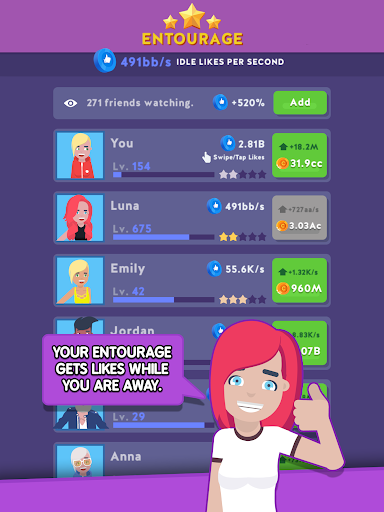 And the profits don’t stop there. Build an entourage to collect cash for you whilst you’re away, so you can come back later and make it rain! Upgrade your wardrobe with hundreds of fresh styles, and compete with your friends to top the global Fametube streaming leaderboard. Who will get the most likes? 😎
