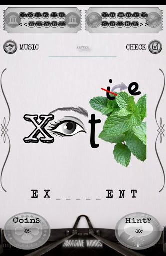 Imagine Words (or "image in words") is a unique word puzzle game that transforms words into pictures. Guess the words or phrases correctly until you reach the final "poetic" surprise. You will find out that it looks like a fun, amusing, rebus based game, but at the same time it has a deep artistic complexion.