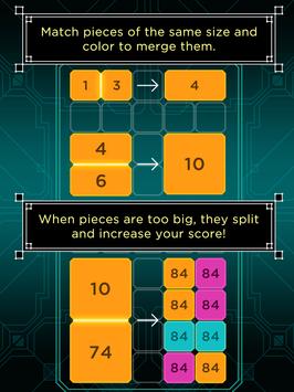 --Merge pieces of the same size, shape and color. When they get too big, they split back into smaller pieces EACH with the score of the large piece.