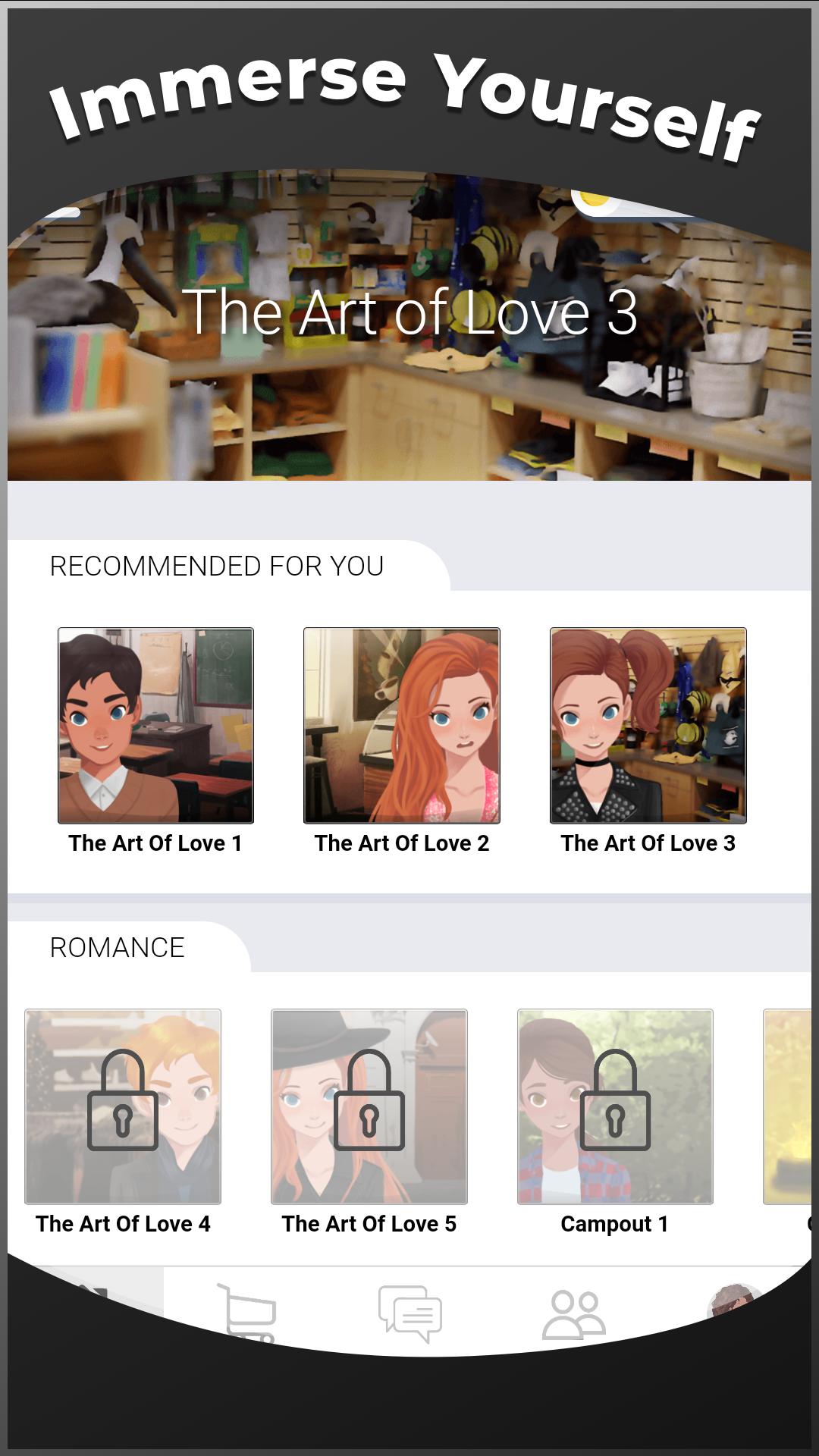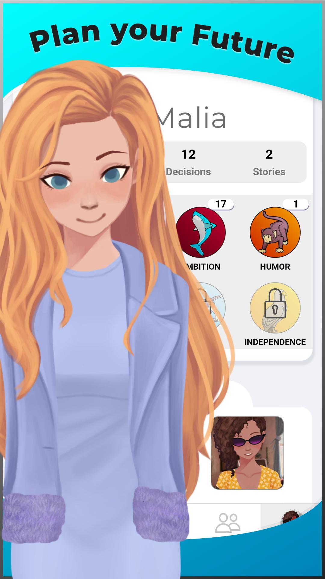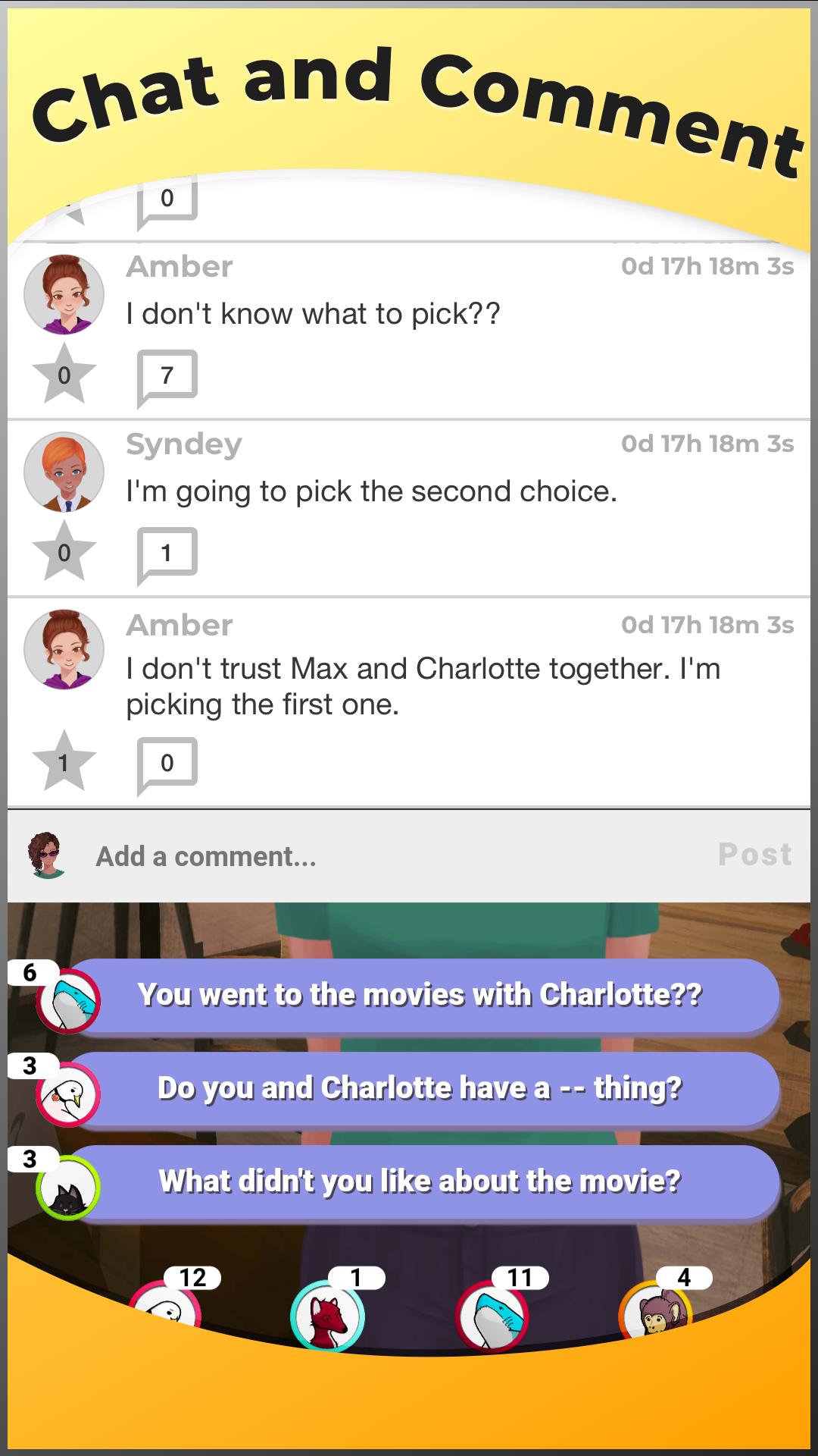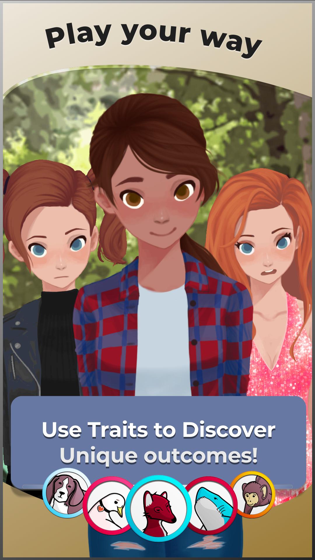 Immersive Stories lets you play interactive stories with your friends! Choose from Romance or Mystery stories and discuss key decision moments with your friends and the community. Decisions effect your character's personality.