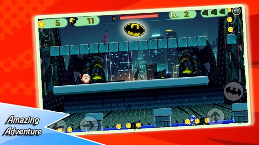 Super hero Batmane Immortal Robots Adventure is a free and cool adventure with a classic platform and a great future world theme, in an old arcade game. Bat hero man and the Joker are two superluminal robots speed and echidna of the future. they lived in a cool gaddget tiny house with their Princess Pacific Princess Tails catwoman. Today is the day when our princess tail and his Batmane Metal Guard are captured by the evil robot king and flee into the future hidden city of mysterious robots. your work must take place and help our brave character articulate the wicked joker to save our pacific princess from the wrong hands of the robot king. the incredible path of the future world and space is not easy, it is full of labyrinth, obstacles and evil robots. you must use your brain to get out of the mazes and win the puzzle, to continue the path of the future world adventure and save the peaceful princess and her guard. These obstacles are easy, you just need to develop your skills on the race and jump to make it easy. the immortal super bat will be about to give the help he needs to make this mission secret possible. In this batmn game, you have to kill monsters and dodge obstacles using 4 moves that are as follows: run, jump, double jump, and dodge monsters across the city of robots. It's a free run and jump game made for kids, teens and adults, boys and girls just for your enjoyment. it is a speed game available and free on google play. In order to kill the evil robots, you can fight them by jumping over them or you can collect bomb bombs to shoot robots and jokers from a distance and keep the joints safe in the future city of adventure robots. This game will surely bring a lot of memories to teens.