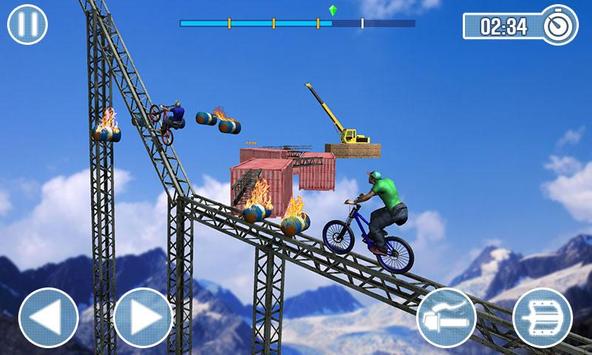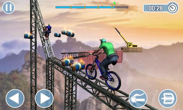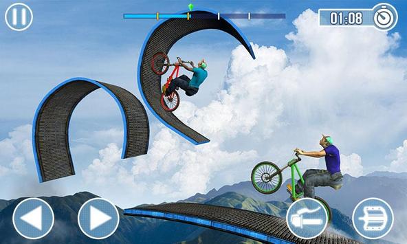 ramps by paddling BMX cycle fast. While racing tricky MTB bike avoid falling down from sky heights.