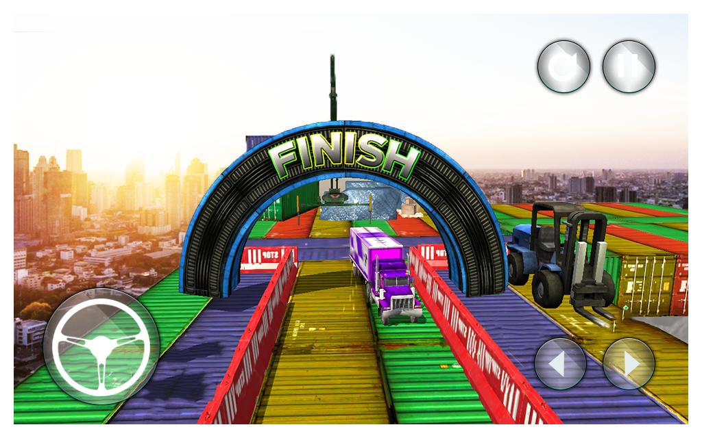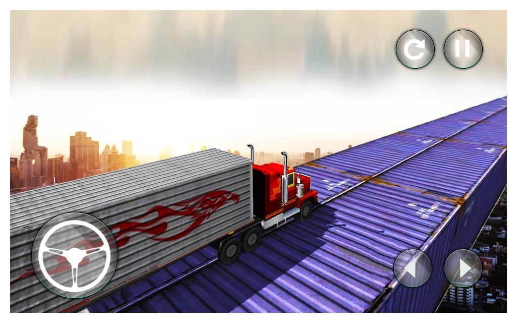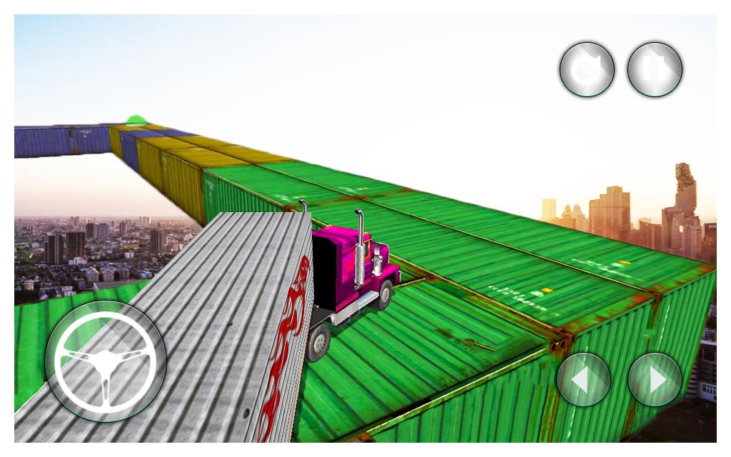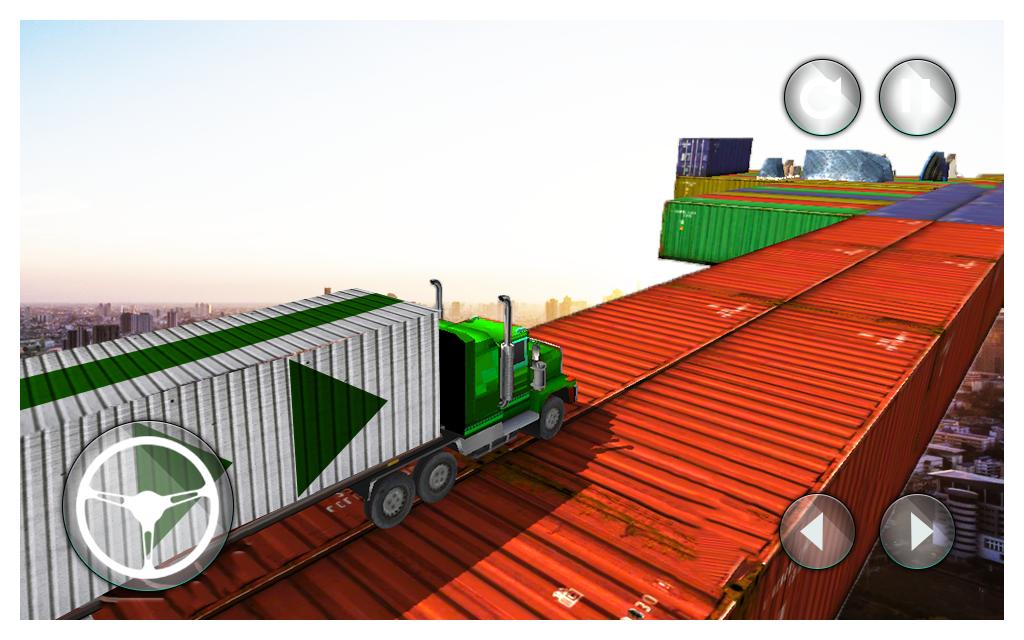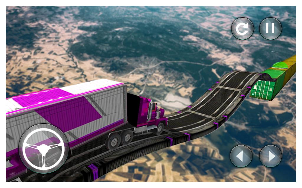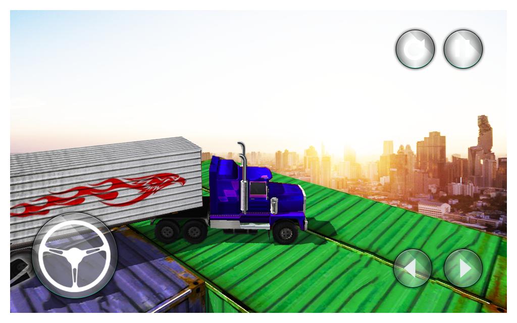 Impossible Track Cargo Transport Truck Driving 3D is the best truck driving game explored in year when the user gets the ultimate chance to drive the powerful cargo truck on this impossible sky track. The track featured in the game is endless track with city rush hour traffic so driving through all of this is extremely difficult because any slip of the road might get dangerous as the truck might fall of the track. The main problem for the user is to take turns as the truck is huge and taking the turn becomes the real challenge for the user to coupe with. The truck balance has to be kept because various cargo items are there in the back of truck and if the truck lose the balance the goods and cargo items might get destroyed. The user will have the real challenge of driving through the track, as the raised platforms and stunt ramps can be a challenge for the user because if the user tries to perform any stnt with the truck it is supposed to be almost impossible like midair flip, jump and roll back jumps are way to difficult to be performed with this huge cargo truck.