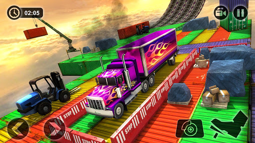 In survival simulator games climbing heights with extreme trucks on mega ramps that have sky limits is hard driving task because you have to avoid fall down from massive height. Sky high driving with heavy vehicles is a job of great responsibility. Take control of big truck for this simulator task in this transport game of big vehicles. The path is narrow so as a real truck transport driver take control of big cargo vehicle driving through containers and trucking mega ramps to stop impossible fall down from massive impossible heights. While driving heavy big rig truck the fast truckers drivers climb and jump to overcome their stunt madness by cruising through the sky.
