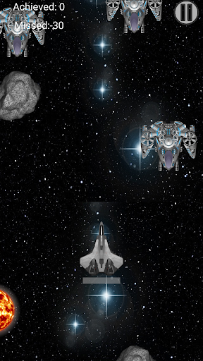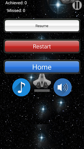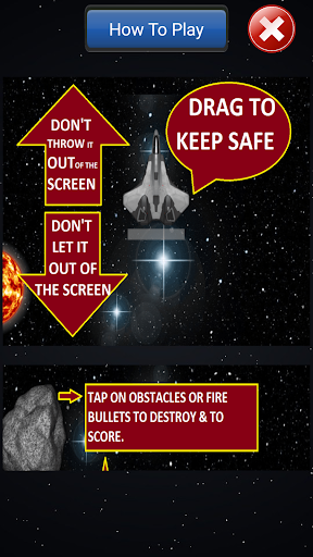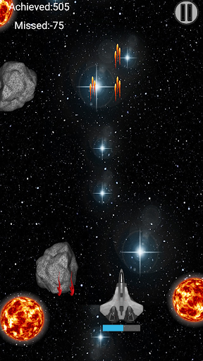 that can be asteroids or enemy fighter spaceships. You have to destroy those obstacles to score, by tapping on them and can fire bullets to destroy and to score bonus as well. If you miss one obstacle and it goes out of screen, you will get negative score.