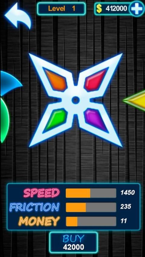 A lot of spinners with different parameters - speed, inertia, money. Buy new ones and upgrade your level. Colorful graphics and addictive gameplay will not leave you indifferent.