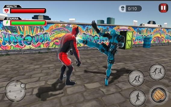 Do you want to become one of the Heroes of the galaxy? Well then this is your chance to affirm it. Rescue innocent people. Train your Spectacular hero squad and eliminate chaos and anarchy on the street. Hand to hand combat in the battlefield is enthralling. Install hearts with fear in the town. Defeat rivals that attack. The universe needs a defender hero with fantastic abilities. Police is unable to catch thugs. Villains are robbing banks; stop them by smashing their heads and bones! Super hero squad includes green and other rich coloured pattern clothes. Evade the spider web.