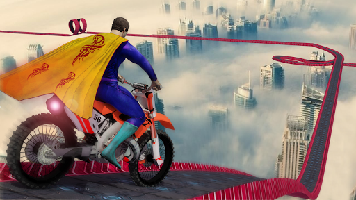 Special tracks design up the earth in the air sky for superhero stunt bike which show expert legendary stunt on their incredible bike, only for your superhero for taking world stunt in bike driving games 2018