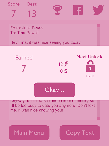 Search for love by having surreal conversations with dates, business prospects, family, friends, and more. To impress them, you'll have to answer their questions before the time runs out. Don't get caught lying or you'll be met with rejection...or worse.