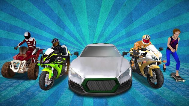 - 5 types of rides available, the heavy bike, bicycle, skateboard, quad bike and sports car.