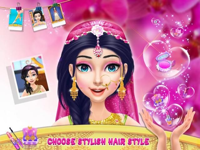 Indian Wedding Dressup Salon is a collection of gorgeous bridal dresses, groom’s make-up, mehndi, jewellery, hairstyles. Make today’s bride from naughty to hottie! Make her look adorable on her special day. Here you will find Indian doll bridal collection. This game is specially made for girls and boys who like to play wedding play games. Let's jump into a stylist with lovely girl, with lovely collection of Indian dresses, you can choose hairstyles and improve her final look.