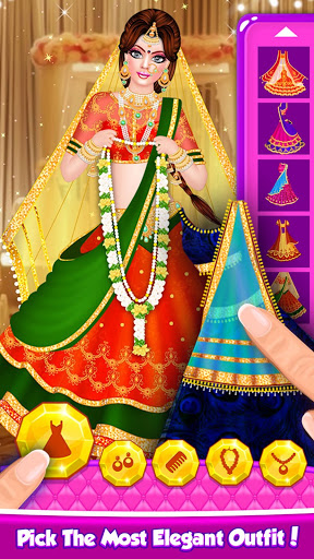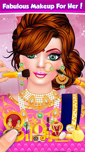 Start your princess bride beauty salon with royal make up; choose princess style hairstyle, perfect eye makeup, hot lipstick & lots of bridal accessories; give your indian girl celebrity look with latest royal designer bridal dresses.