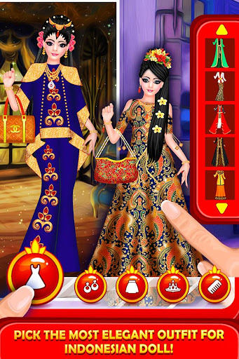 Start your Indonesian Fashion Doll beauty salon with royal make up; choose princess style hairstyle, perfect eye makeup, hot lipstick & lots of fashion accessories; give your Fashion Doll celebrity look with latest royal designer dresses.