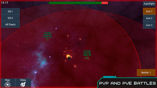 Take part in space battles and conquer the Galaxy! Declare your rights to space territories, take control over new star systems destroying enemy stations and fleets! Build and upgrade your Space Station and ships and improve theirs combat power!