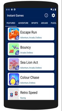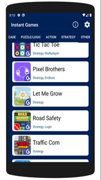 With Instant Games, enjoy 1000 web games on your Android ranging from Puzzle to Action, Board to Racing, Halloween to Classic and what not!