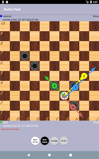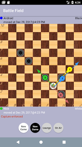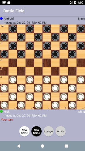 Strategic Board checkers game for two players or computer on 10×10 squares board with additional features: - Chat with your partner - Broadcast your game in internet realtime - Notify club members