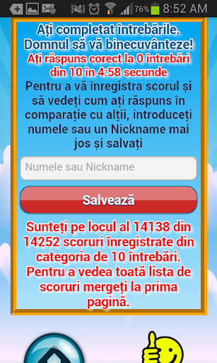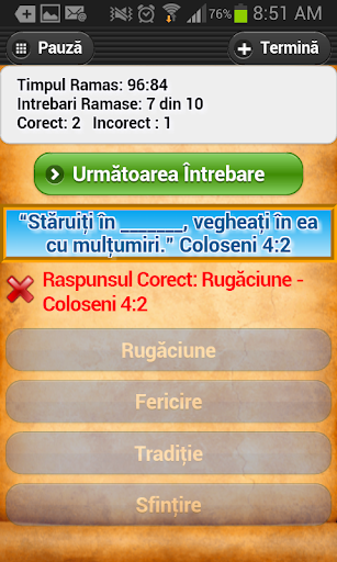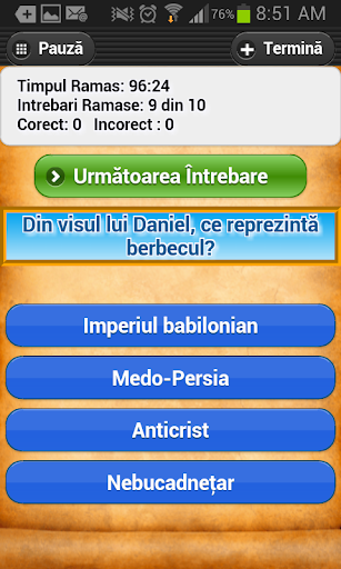 El primer cuestionario bíblico rumano disponible en Google Play!No contiene anuncios para llamar la atención de la Palabra de Dios.Uno de los mejores programas para un cristiano verdadero y honesto.Estudio bíblico gratuito