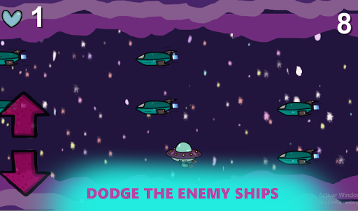 The objective of the game is to dodge the enemy ships and achieve the best score