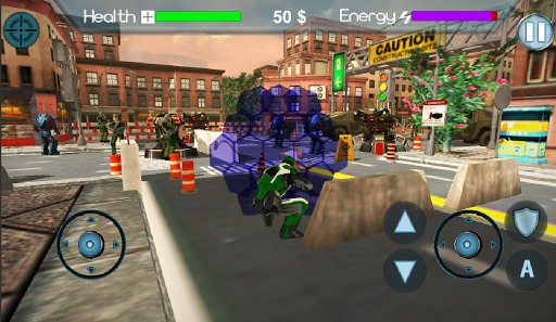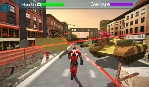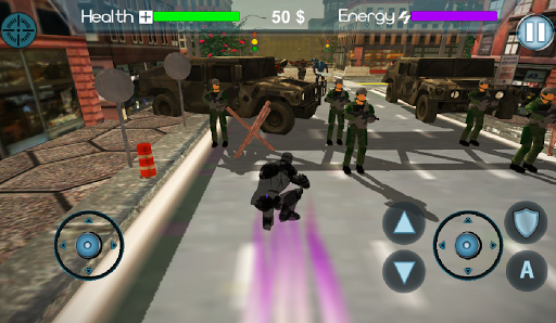 You can upgrade your armor, speed and power from the shop you can buy new technology! In order to avoid a mass destruction and keep the the city safe you have to complete all missions.