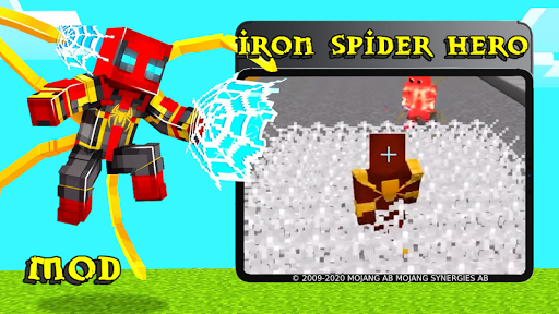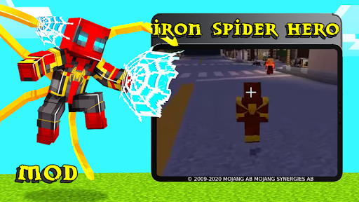 Iron Spider Hero Mod is a marvel superhero skin in symbiosis with another avenger. You used to know the boyfriend of a schoolboy, Peter Parker, who built himself a suit of an avenger, who cannot even survive a cut from a robber, because of the strength of his armor. But this addition contains two in one legendary red-yellow and blue-red costumes. Which are not only equipped with the ability to fly like ancient dragons, but also steep iron legs like spiders. Not only will the appearance of your skin look dangerous, but also in the helmet you will have sensors that will be like a cheat, will give you the ability to look through walls and see all the movements of wagons. A very powerful weapon in bravl stars or bed wars, but in any other pvp mode you will not be equal. It is also very cool to use a suit for research to fly the entire game the sandbox will be many times faster and more fun, there is nothing more beautiful than watching the world from a bird's eye view. Tony Stark - the creator of all the functions of the nano costume, added beautiful lights to his arms and legs. Iron man, in conjunction with spider man, is the most powerful weapon - because dexterity and speed, together with all the modern functions of a stark, is a powerful weapon against evil and other enemies. For a more interesting installation of the add-on, we added a crafting table in which from the available components you can create some elements such as a diamond, a princess, a troll and even a castle. After you get some artifacts, you can fully proceed to install in your language.