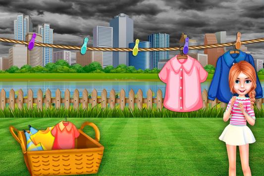 Hi. All children want to play outside as much, so you have to go out with them even if it is sunny or raining. Today, it was announced to be very unfriendly weather with cloudy sky and more rain. My daughter stayed in the park and playing when suddenly caught the rain, so all her clothes were dirty lot. In this game, you have to be the one who will clean clothes because I am very busy and can not do. Before that, you have to read the instructions to know what to do in this game for girls. Good luck!