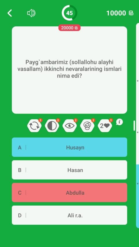 Quyidagi yordamlardan foydalanishingiz mumkin. Viktorina o'yinida 5 xil maslahat mavjud: