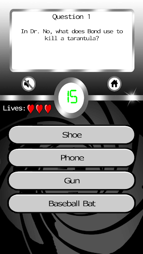 There are questions about the James Bond actors, villains, allies, girls, gadgets, locations and more.