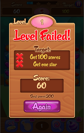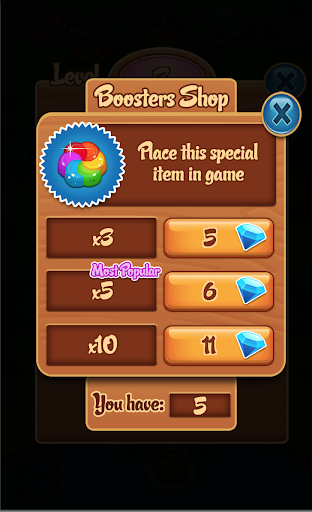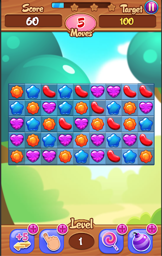 Match the jewels in a line to remove them Match 4 jewels to win the jewel's candy bomb form and 1 lighting bonus. Match 5 jewels to win the jewel's candy vortex form 2 lighting bonus. The bombs can eliminate the jewels touching it. The Color-shifting Jewel Candy can eliminate to any other colored jewel. Keep hungry, enjoy this sweet and delicious Jelly Bean!