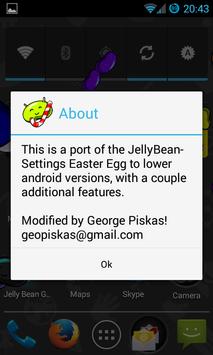 This is a port of the JellyBean-Settings Easter Egg to both older and newer android versions, with a couple additional features!
