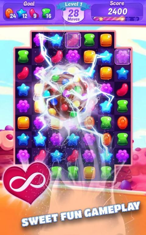 It has different types of difficulty levels such as candy jelly rescue, drop the fruit, collect jelly blast, crush chocolate, crush ice jelly, timed level etc. Every level is unique and exciting.You will start your sweet jelly mania journey to complete crushes deliciously and make sweet candy mania on jelly blast.