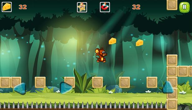 In the Jungle Jerry Adventure Run, you will not have to run through levels but you have to jump and dodge monsters and obstacles as well. You can also collect cheese to power up Jerry