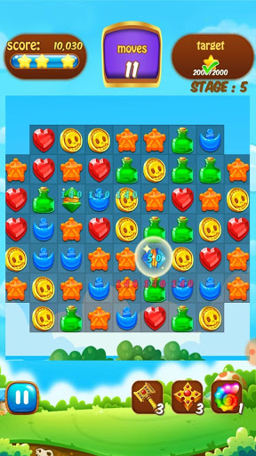 - Every match from 3 jewels you will accumulate energy for mighty bomb, that helps to destroy obstacles for you.