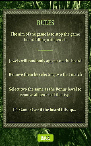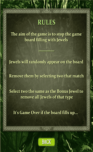 Jewels randomly appear on the game board. Select two that match to crush and remove them. As the game progresses, Jewels appear faster and faster. You've got to be quick or else the game board will fill up and it will be Game Over.