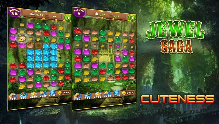 Your mission is to win Jewel Saga, pass the levels and try to get all stars in each level. Jewel Saga is an addictive and delicious adventure filled with colorful gem crunching effects and well designed puzzles for you to play in subway time! With candy style jewels to smash and eliminate in each level, Jewel Saga is twice the fun but familiar to play. So let's get started to crush now!