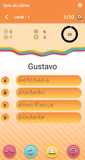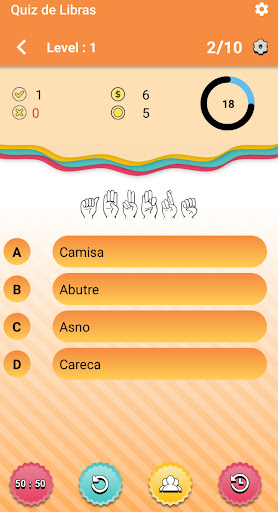 이 응용 프로그램은 사용자가 브라질 표지판 (Libras)의 타이프 라이트를 배울 수 있도록 도와줍니다.Datitlology (파운드)에서 더 많은 재미와 학습을 위해 완전히 재구성되었습니다.이 게임은 두 가지 범주로 나누어졌습니다. 첫 번째 질문은 디 틸론과 포르투갈어의 대답입니다.