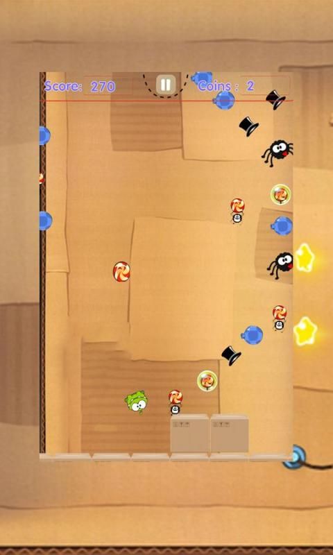 gifts.In this great adventure Game Jumping cut Candy rope, you have to feed Om, made Jumping cut rope