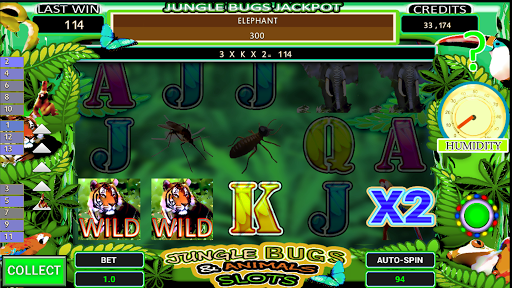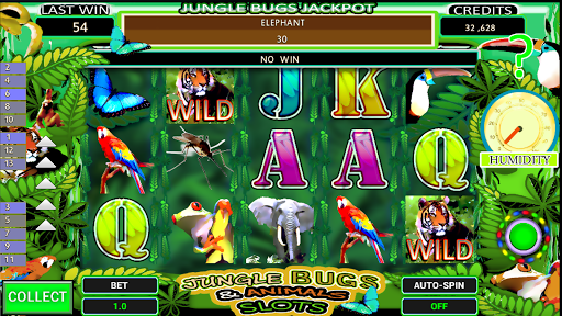 Progressive jackpot, fun jungle games, forest animal symbols, Amazon insects, wilds and bonus multipliers.
