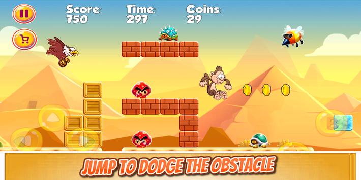 Jungle Monkey : Island Banana Adventure platform game where you need to get the Princess trapped inside the Castle, eat Bananas, overcome various obstacles, fight enemies and conquer the world by defeating enemy World leaders.